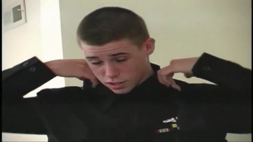 O jovem marinheiro Mark Woods, deixa cair seu uniforme para que você possa admirar o seu grande pau enquanto ele se masturba na frente de voce.