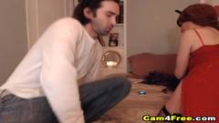 Delicia de ruiva de vestido vermelho tira a roupa dela e recebe todo o cacete duro do seu parceiro. Que fantástico corpo de mulher que ela tem.
