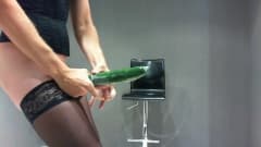 Esse homem gosta de fazer todo tipo de coisa quando se masturba, como colocar meias femininas ou penetrar-se com um pepino enorme.