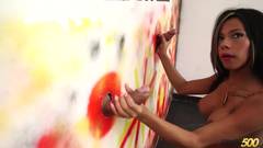 Esta shemale preta gosta de ver o que sairá dos buracos na parede porque estas rola a excitam completamente como nós veremos.
