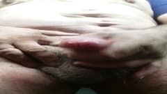 Homem gordo cheio de tesão batendo uma punheta bem gostosa na frente da câmera com gozada no final muito legal