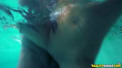 Mamando uma rola debaixo de agua na piscina
