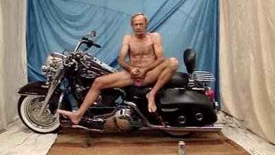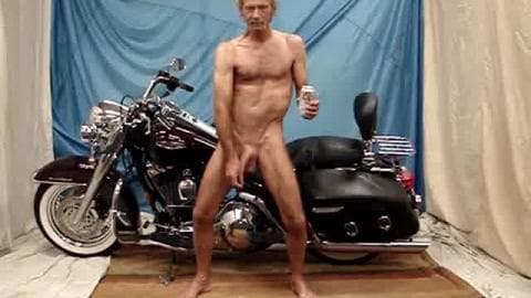 Este velho bebe uma cerveja enquanto se masturba na sua moto. É o melhor momento que passa e ele faz isso quando está sozinho na câmera.