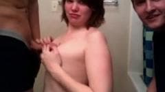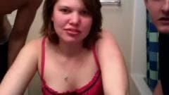Essa morena jovem é muito safada e fica ainda mais gostosa quando esses dois homens querem que ela chupe seus paus na frente da câmera.