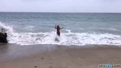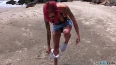 Sexo na praia registado na POV com a ruiva tatuada Anna Bell