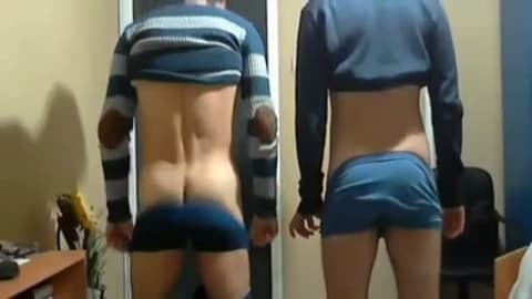 Estes dois jovens amigos da faculdade mostram o seu abdômen musculado e os pénis sem pêlos, eles tentam deixá-los duros também