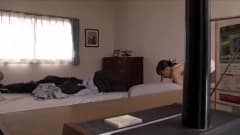 Uma garota asiática com uma cona peluda e grandes mamas persuade um amigo gordo a fazer sexo, chupa seu pau e finalmente consegue uma boa foda.