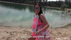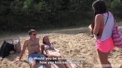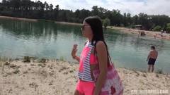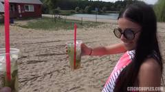 Quando esta morena está entediada em casa, ela sai para passear na praia para encontrar alguns amigos que querem transar ao ar livre