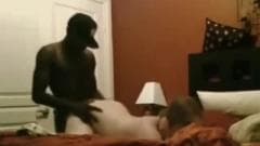 Este cara muito negro coloca sua parceira de casa na posição de cachorrinho. A medida que ele a fode, está aproveitando cada vez mais seu belo corpo.