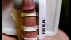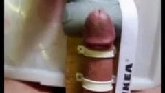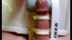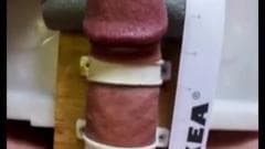 Esse cara está se sentindo inspirado e ele faz uma nova ferramenta para se masturbar e ele gosta tanto que ele ejacula no final