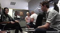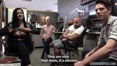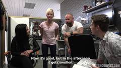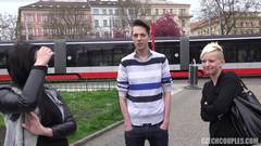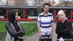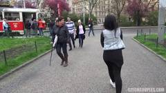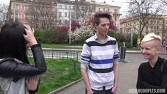 Essas duas mulheres foram abordadas por alguns tios na rua, que lhes oferecem algum dinheiro para o sexo em um lugar onde eles podem gravar tudo.