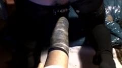 Este homem mal pode esperar para apreciar seu enorme vibrador esta tarde. Ele enfia profundamente no buraco na bunda para dilatar o ânus com prazer.