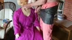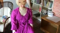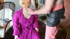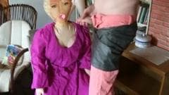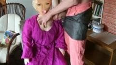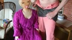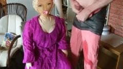 Esse cara ama sua boneca e é por isso que ele não pode esperar para mijar em cima dela antes de mijar em si mesmo e colocar o pau na boca de plástico