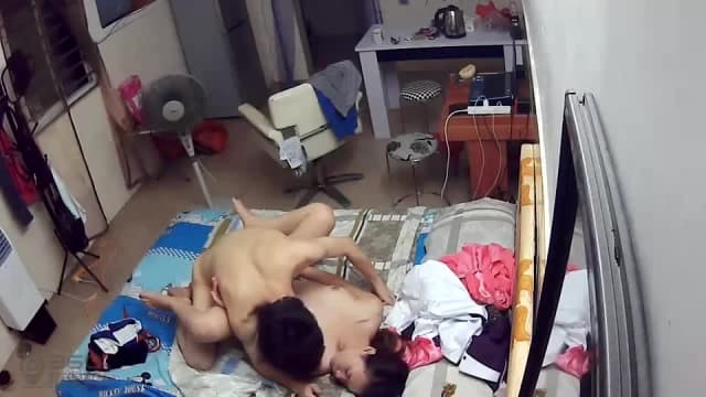 Este homem colocou uma câmera de segurança para gravar em seu quarto enquanto ele transa com uma moça bonita que gosta de cunilíngus.