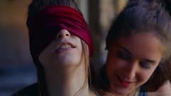 Sua amiga é lésbica e ela quer lhe fazer uma surpresa, então pede que ela venda os olhos e depois a masturbe com sensualidade e desejo.
