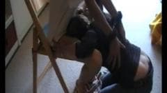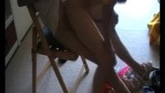 Esse cara senta em uma cadeira pequena e espera que essa linda loira faça todo o trabalho. Ele faz tão bem que o cara corre super rápido.