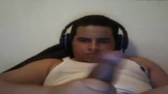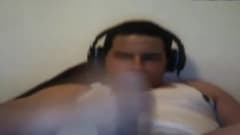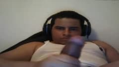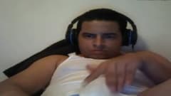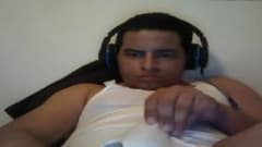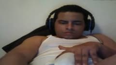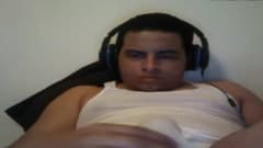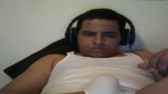 Esse jovem latino esvazia as bolas na frente da câmera se masturbando enquanto ouve boa música e comentários de seus seguidores,
