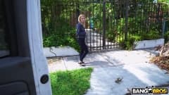 Ela precisava de dinheiro e conseguiu ganhar $ 420 por entrar na van desse estranho para se masturbar e também ser fodida como uma cadela.