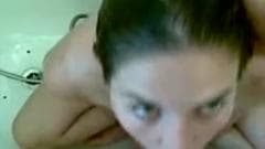 Enquanto ela toma banho, seu homem quer agradá-la com algum sexo oral que ela mais gosta. irá surpreendê-lo nesta cena pornô amador