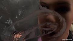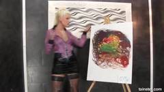 A inspiração desta artista loira está aberta à excitação e hoje ela terá uma aventura especial chupando um pau falso que sai do buraco na parede