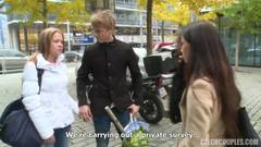 Parece que este homem teve muita sorte e encontrou um par de mulheres muito excitadas que estão dispostas a foder com ele em trio.