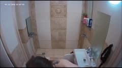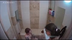 Essas duas lésbicas acariciam e se beijam no chuveiro enquanto tomam banho. Quando eles terminam um terceiro, ele parece tomar banho também.