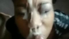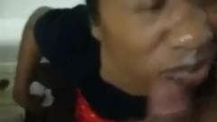 Neguinha safada adora sentir a gozada quentinha cobrindo sua cara e escorrendo na boca dela. Safada deixa ele gravar esses momentos para nós.