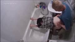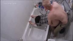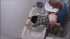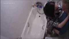 Esta mulher queria entrar na banheira, mas seu namorado a surpreendeu e a fez se curvar e depois colocar seu pênis dentro com grande prazer.