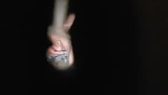 Ela depila a buceta enquanto alguém a enfia pelo buraco da fechadura