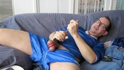 Este senhor decide ficar em casa hoje, amarrar suas bolas e começar a se masturbar da melhor maneira no sofá da sala. Não o perca!