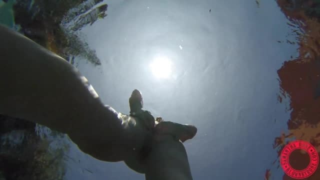 Esta é uma cena linda e tentadora na qual você vê uma jovem loira se masturbando suavemente debaixo d'água numa piscina num lindo dia de sol, não perca!
