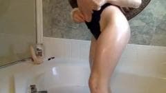 Aqui você tem uma bela jovem transexual na banheira, aquecendo-se com uma masturbação que provavelmente a deixará mais excitada do que nunca.
