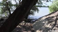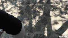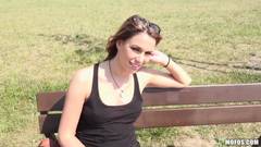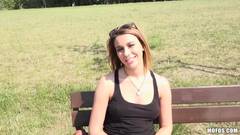 A Ani Black Fox, uma loira linda, fica num parque ensolarado e é surpreendida por um cara que oferece dinheiro par ela le bater pegar um boquete.