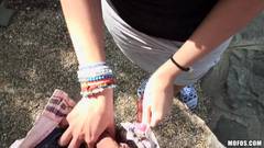 Ani Black Fox chupando galo num parque público por dinheiro