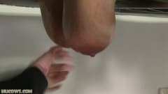 Essa mulher se diverte muito e se emociona com seus peitos enormes, e um homem acaba colocando-a em uma máquina para ordenhá-la como uma vaca. Que cena!