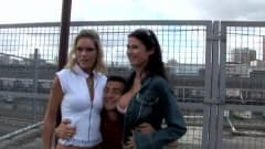 Uma vadia Eva Karera e outra vadia são pegas por um grupo de caras na rua e vão com eles para fazer sexo em grupo. Confira esta porra nas poses!
