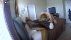 Loira com mamas grandes Olivia Austin está esperando por um amante num quarto de hotel; quando o cara aparece, ela lhe faz um broche e é fodida.