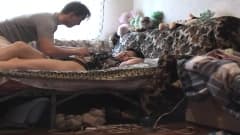 Esse cara coloca a câmera para gravar enquanto acorda uma morena que está dormindo e que quer fazer sexo muito cedo.
