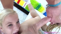 Essa puta loira boazona vai ter sua buceta arrancada por um cara grande e ela gosta tantp como sua amiga morena que desfruta também