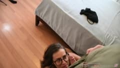 Kelsi Monroe, linda vadia com óculos, começará chupando a grande piça de um barbudo bonito e depois será fodida em posições profundas, veja só!