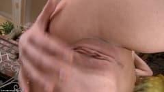 Uma linda loira fica extremamente excitada ao tocar sua buceta raspada e molhada! Corando de prazer, ela é muito safada!