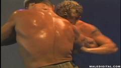 Esses dois amantes têm um bom treino hoje, enquanto lutam e se acariciam nus. Eles são lindos e seus corpos são loucos.