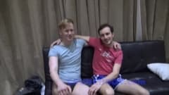 Esses dois amigos se divertem muito enquanto chupam seu pau gostoso e lambem seu ânus peludo até que sejam profundamente sodomizados.