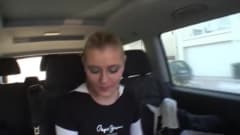 Num dia frio de inverno,uma loira pede carona e vai se aquecer com dois paus no carro. Ela vai chupar e foder com os dois e engole a porra deles!