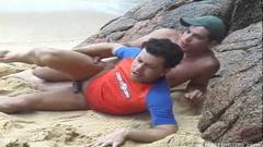 Neste vídeo curtimos um casal gay muito animado transando na areia. Não perca este video espetacular!