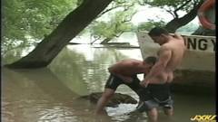 Um barco está preso perto da praia e os oficiais bonitos e musculosos a bordo aproveitam uma intensa sessão de sexo oral e anal.