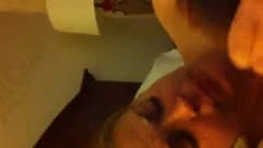 Quando esse cara percebe que sua garota enlouqueceu e começa a chupar o pau dele com os olhos fechados, ele aproveita para gravar com o celular