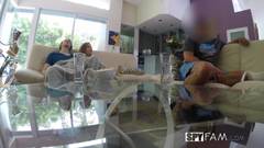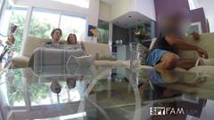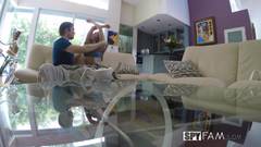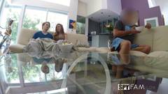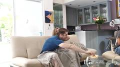 Esse cara vai ver TV, e sua meia-irmã vem para acompanhá-lo. Como o filme é romântico, eles decidem se foder ali mesmo.