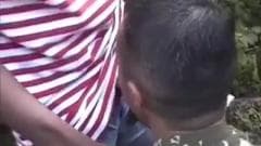 Esse cara está feliz por ter dois grandes paus pretos para si, que ele colocará inteiro na boca e depois na bunda até que eles cheguem.