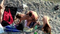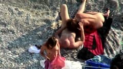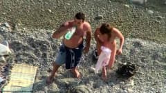 Esses caras levaram suas mulheres para a praia e sem saber que alguém está filmando enquanto eles começam a foder nas rochas.